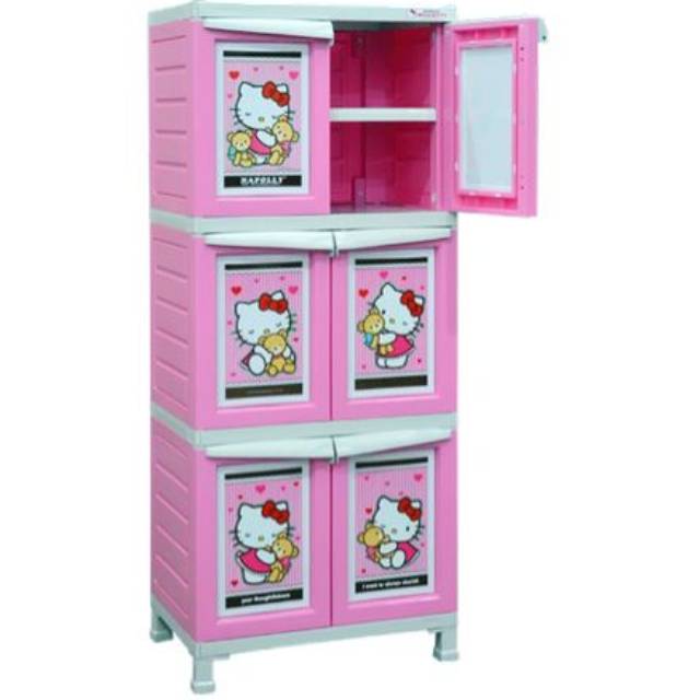 02 05 2014 Lemari plastik Hello Kitty ini produksi pabrik Napolly Lemari plastik tersedia susun 4 dan susun 5 lemari plastik ini dapat menyimpan pakaian anak anak buku pelajaran kawasan mainan anak dan lain lain keunggulan produk ini merupakan motif Hello Kitty ini bukan main disukai anak perempuan oleh sebab itu lucu menarik design lemari plastik yang