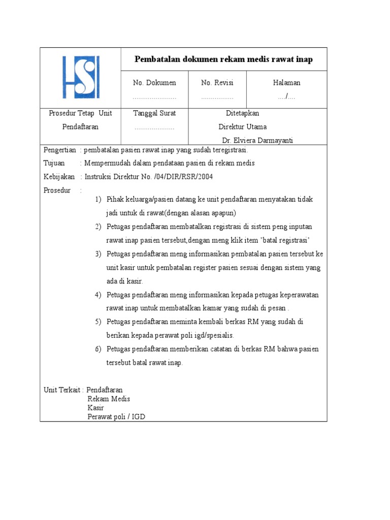 Pembatalan Dokumen Rekam Medis Rawat Inap Sumber : www.scribd.com